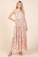 A flower print tiered sleeveless empire maxi dress is a beautiful and elegant dress with a flattering silhouette. The empire waistline sits just below the bust, creating a defined waist and a flowing, floor-length skirt. The tiered design adds dimension and movement to the dress, giving it a whimsical and romantic feel. The sleeveless style is perfect for warm-weather occasions, while the floral print adds a feminine and timeless touch. This type of dress is versatile and can be dressed up with heels and accessories for formal events or worn with sandals for a more casual look. It's a classic and chic choice for various special occasions.