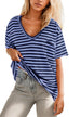 Elevate your casual wardrobe with our oversized striped color block top! These tees feature comfortable fabric, short sleeves and a relaxed fit for a relaxed, laid-back look.