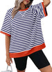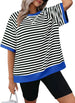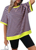 Elevate your casual wardrobe with our oversized striped color block tops! Crafted with a comfortable crewneck and short sleeves, these tees offer a loose fit for a relaxed and laid-back look.